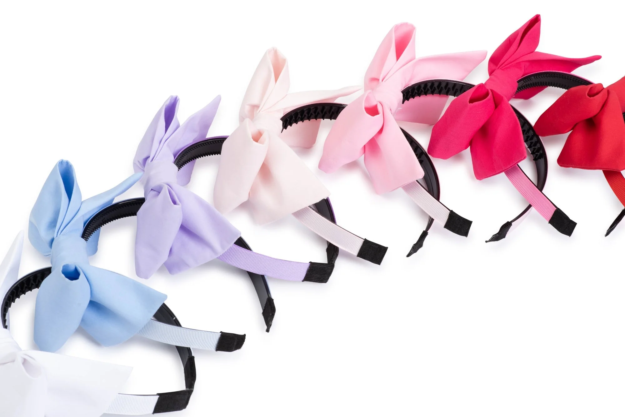 Images shown are bows for example of the colors, but this product is the ribbon lined HEADBAND with teeth option.