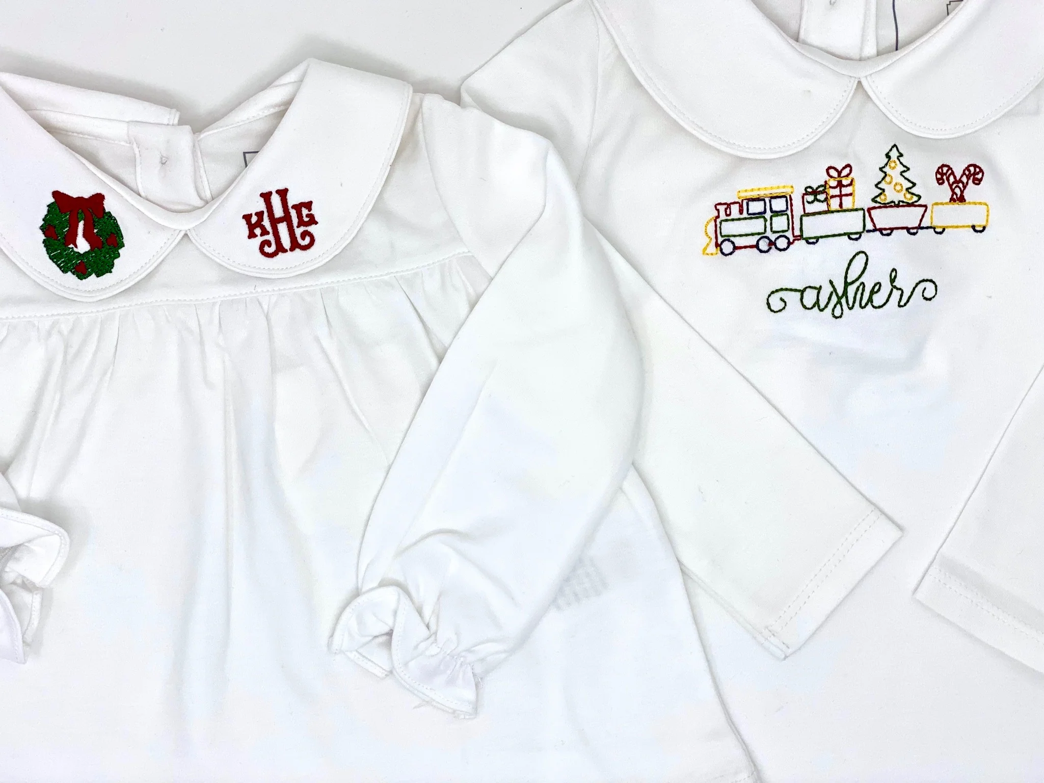 Pima cotton peter pan collared tunic style shirt. Three button closure in the back.