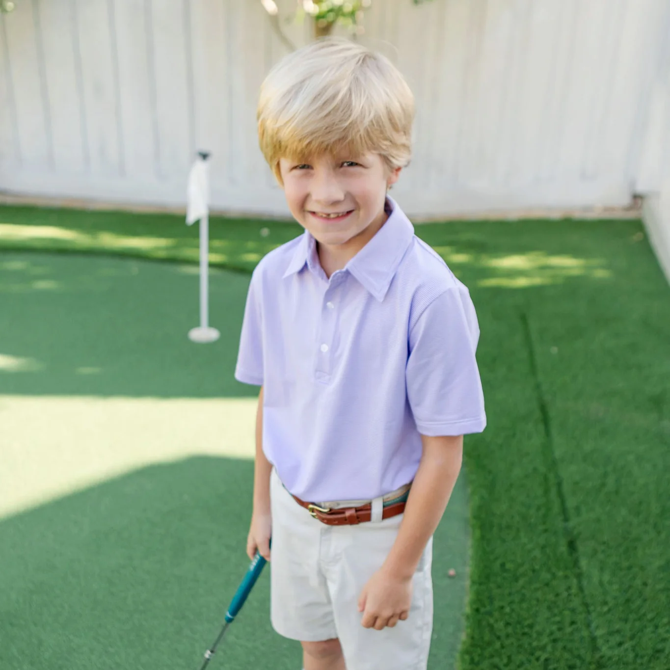 Will Boys' Performance Polo by LH Sport Purple Stripes—