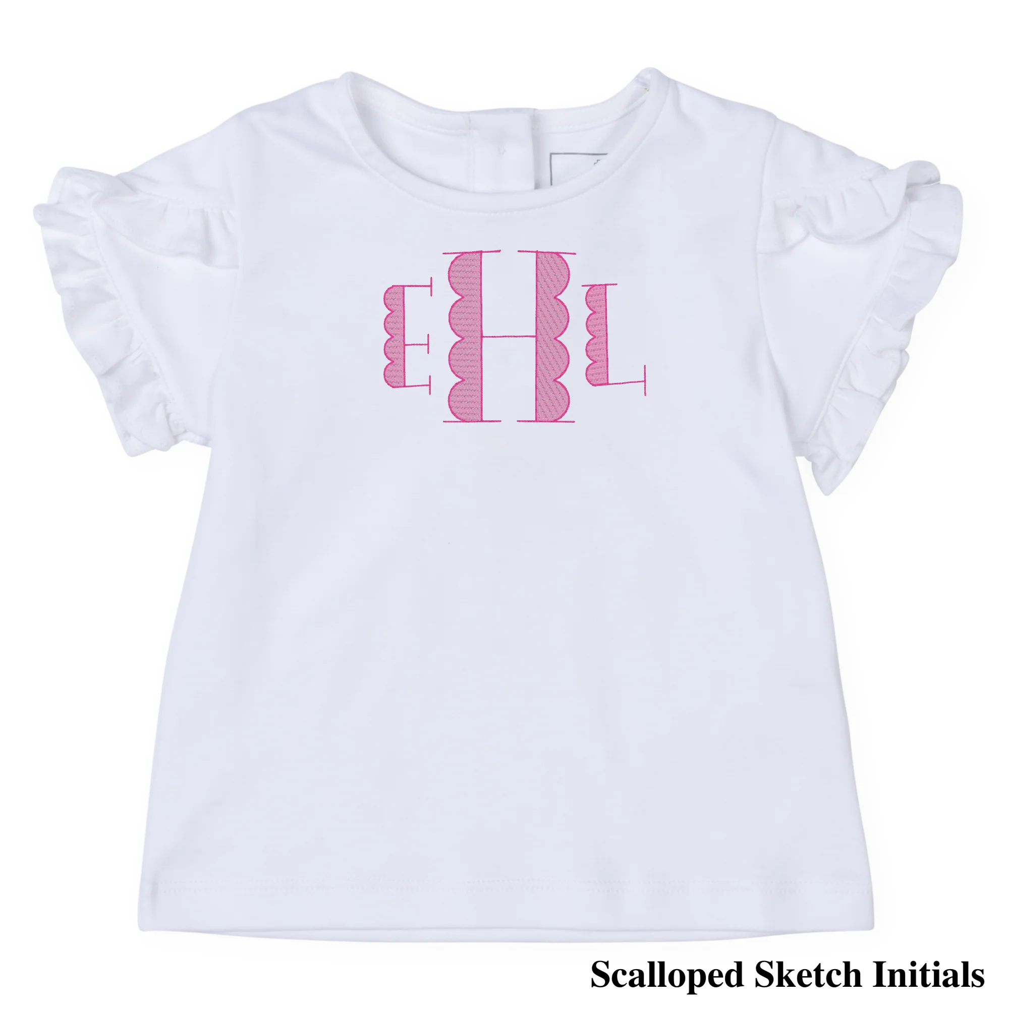Girls' pima cotton short sleeve shirt with ruffled sleeves. Made from 100% Peruvian Cotton.